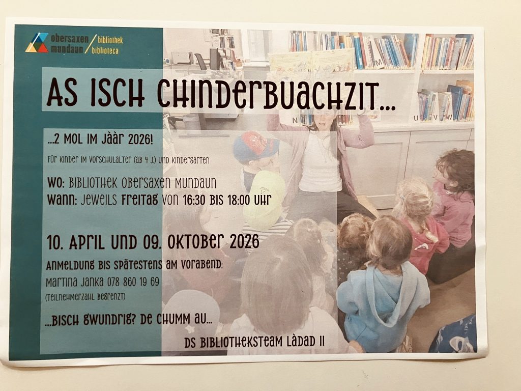 Wir haben am Montag von 09:00 bis 10:30 Uhr; Dienstag von 15:30 bis 17:00 Uhr und Freitag von 18:00 bis 19:30 Uhr für Sie geöffnet. In den Ferien (ausser in den Frühlingsferien) jeweils am Montag und Freitag von 18:00 bis 19:30 Uhr. Ausgenommen Feiertage! Wir freuen uns, Sie in der Bibliothek begrüssen zu dürfen!